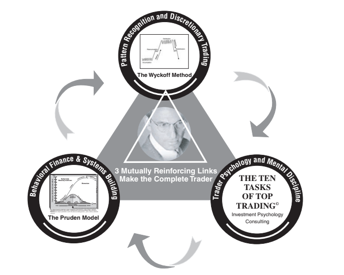 Las Tres Habilidades del Trading Superior de Hank Pruden son interdependientes. Un sistema conductual bien definido (Habilidad 1) proporciona la estructura para operar consistentemente, pero su eficacia depende de un estado mental controlado (Habilidad 3) y de la capacidad para reconocer patrones significativos (Habilidad 2) en el gráfico. A su vez, una sólida gestión mental permite la disciplina necesaria para seguir el sistema y la claridad para ver los patrones sin distorsiones emocionales. Y, por supuesto, el reconocimiento experto de patrones nutre la confianza en el sistema y refuerza un estado mental positivo.